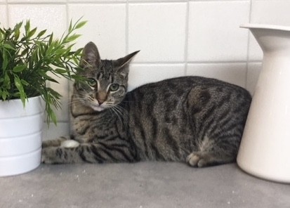 A stunning light brown tabby with adorable green eyes, the most adorable innocent face who has a sweet gentle nature.