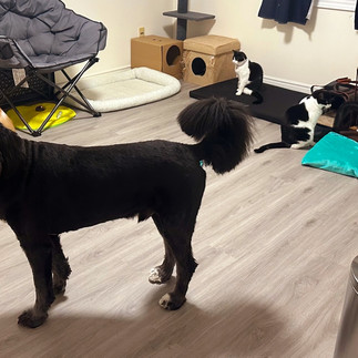 "They are doing great! They decompressed quite well, scared the first day but they are more curious and playful now. My dad's a contractor so he actually renovated one of our guest rooms so it's specifically for the cats. They did very well when doing a gradual introduction with my 100lbs dog and 12lbs cat. I have a baby gate covering the door so Churchill and Dicky are still physically separated from the other pets. They actually got along with my dog quite a lot faster than I expected. By the third night Churchill jumped over the baby gate and played with my dog who was sleeping by the baby gate. They are very playful, curious, eager to explore and love to cuddle when they aren’t sound asleep in their rooms :)