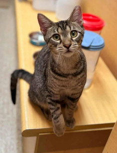This charming short-haired brown tabby, with his wide, innocent eyes and gentle, sweet spirit, brings a special warmth to every moment. Like any adventurous teenage kitten, Presley loves to wrestle with his sister, chase and leap after toys, and explore every new corner with boundless curiosity. His zest for life is matched only by his two greatest passions: mealtime and playtime. When the excitement winds down, Presley can often be found snuggled close to his sister Precious, sharing quiet moments of comfort and love. Together, they discover the world, play until they’re tuckered out, and team up for enthusiastic attacks when lickable treats appear!