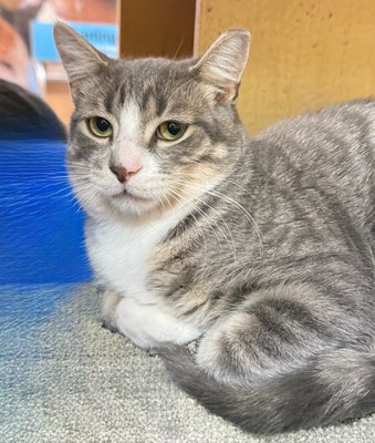 With his soft grey and white coat, adorable white paws, and captivating amber eyes, Sky is truly a handsome little fellow. But what makes him shine is his sweet, affectionate nature—he’s a people-focused boy who just wants to be close to those he trusts.